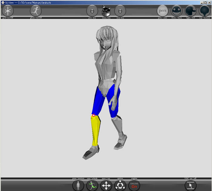 図では、モーション用モデルは灰色に設定しましたが、部位毎に色をわけることも可能です、ただし複数に色分けした場合、選択用の色変化(赤、黄色)や固定の青表示が無効になるので、非常に使いづらくなりメリットはありません。
